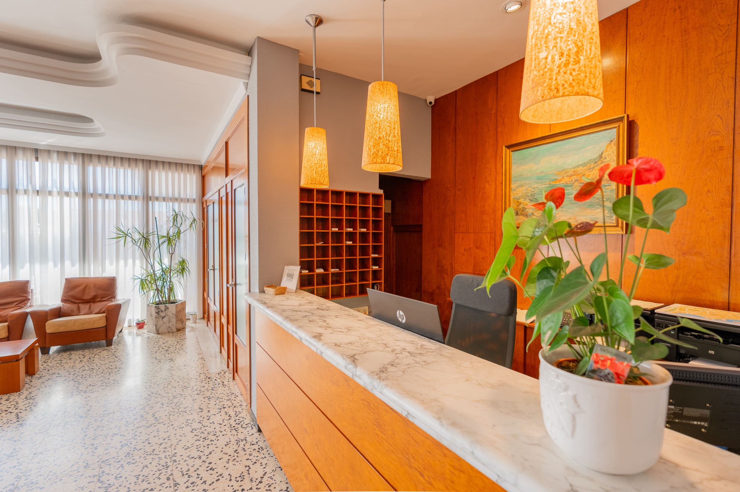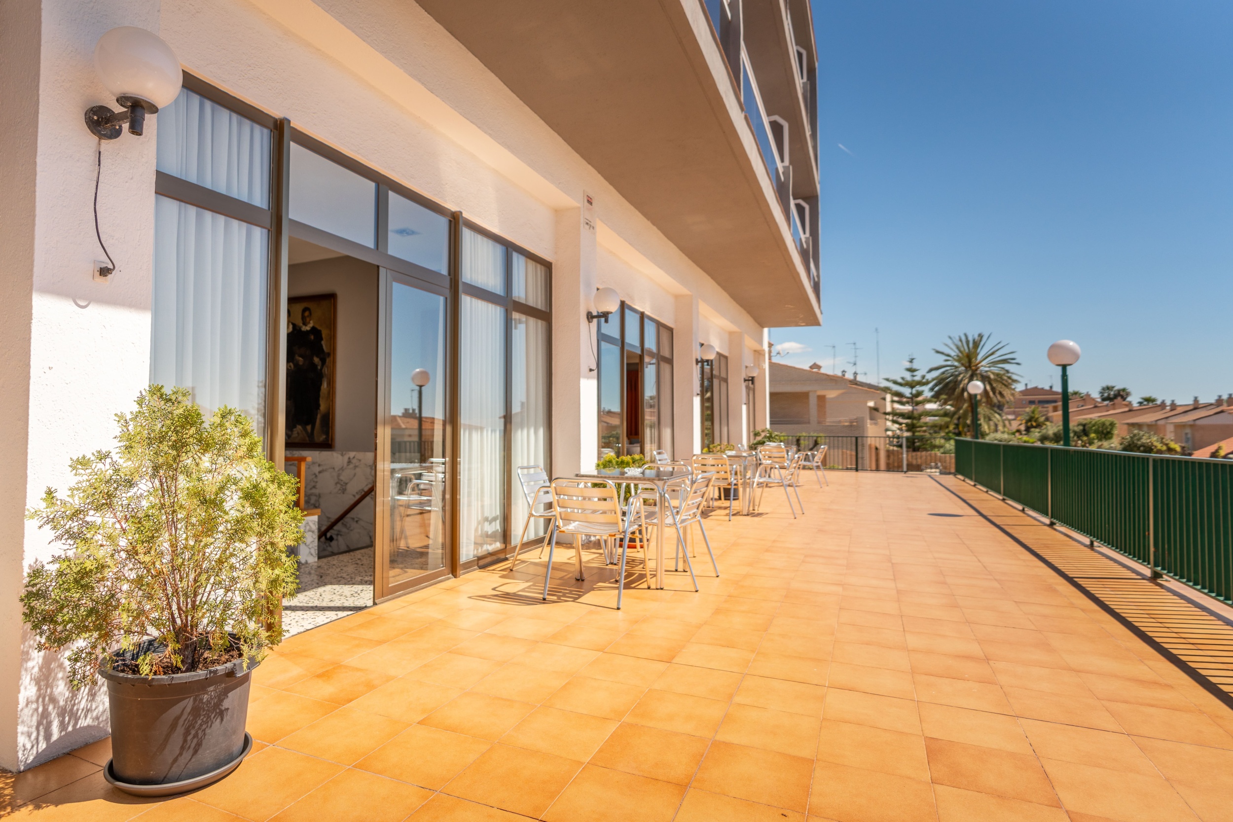 El hotel tiene parking gratuito, estamos a menos de 100 metros de la playa y perfectamente comunicados con el centro, que esta a 2 km, y la parada de autobús esta a escasos 100 metros.